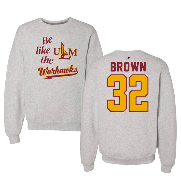 University of Louisiana Monroe Softball Light Gray Be Like Us Crewneck - #32 Meagan Brown