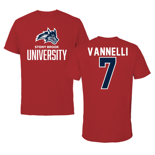 Stony Brook University Softball Canvas Red Tee - #7 Mia Vannelli