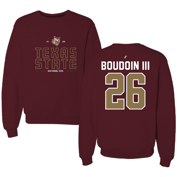 Texas State University Football Maroon General Crewneck - #26 Michael Boudoin III