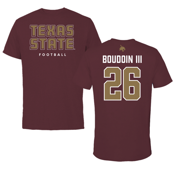 Texas State University Football Maroon Tee - #26 Michael Boudoin III