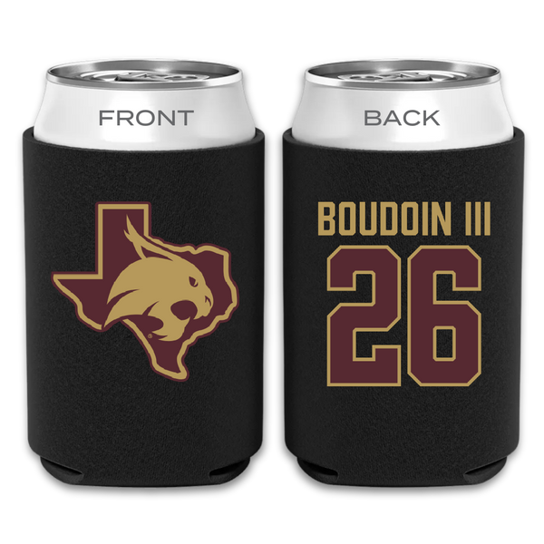 Texas State University Football Black Can Cooler - #26 Michael Boudoin III