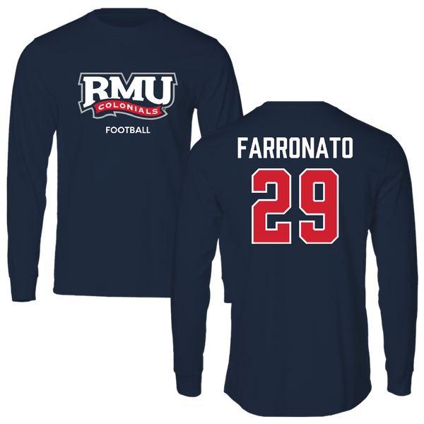 Robert Morris University Football Navy RMU Long Sleeve - #29 Michael Farronato