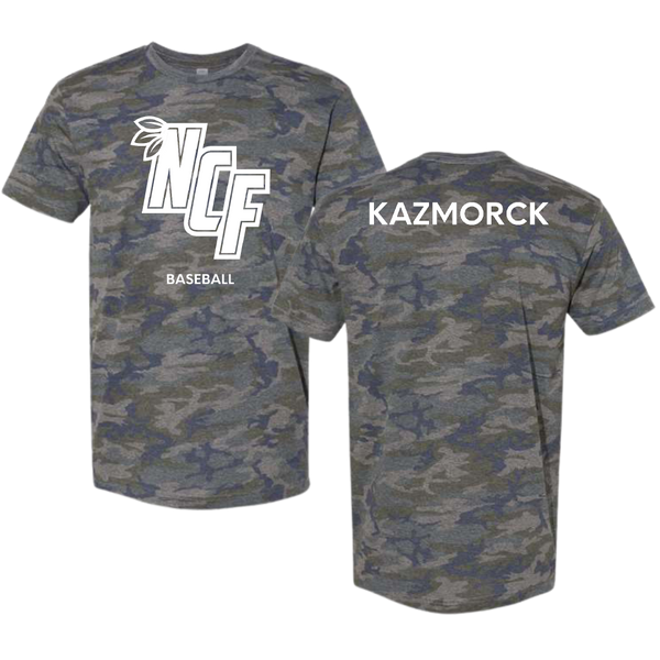 New College of Florida Baseball Vintage Camo Tee - Mikey Kazmorck