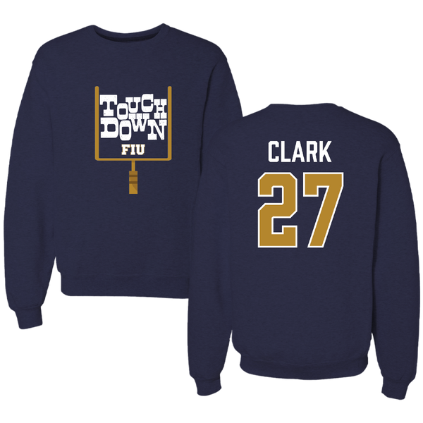 Florida International University Football Navy Touchdown Crewneck - #27 Mister Clark
