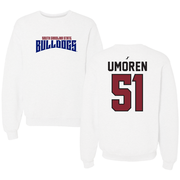 South Carolina State University Football White Classic Crewneck - #51 Moses Umoren