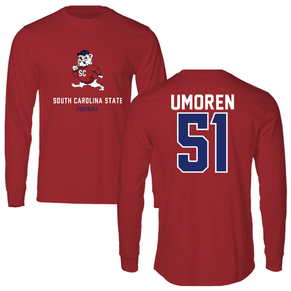 South Carolina State University Football Canvas Red Long Sleeve - #51 Moses Umoren