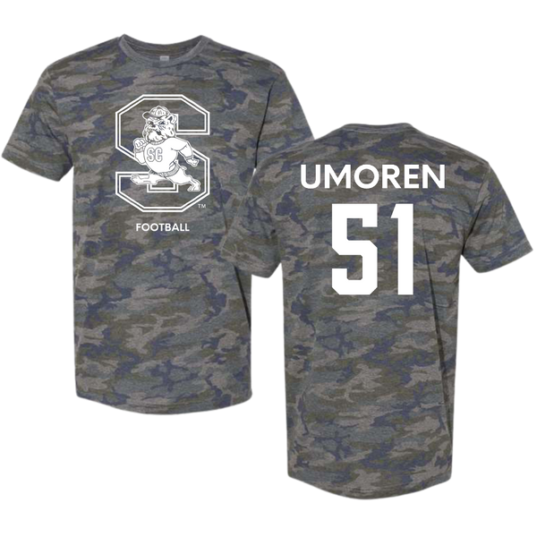 South Carolina State University Football Vintage Camo Tee - #51 Moses Umoren