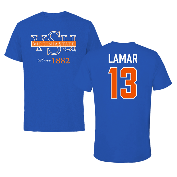 Virginia State University Football Blue Tee - #13 Nasir Lamar