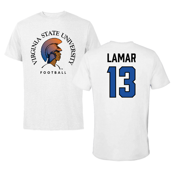 Virginia State University Football White Tee - #13 Nasir Lamar
