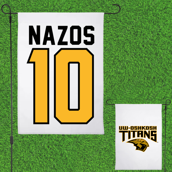 University of Wisconsin-Oshkosh Basketball White Garden Flag - #10 Nate Nazos