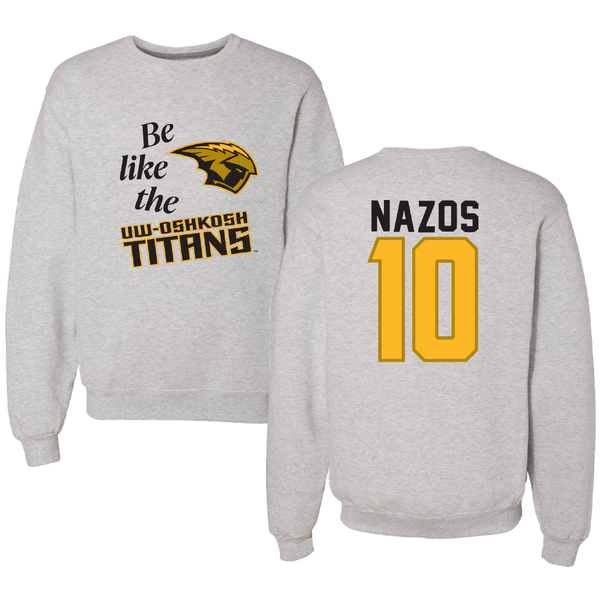 University of Wisconsin-Oshkosh Basketball Light Gray Be Like Us Crewneck - #10 Nate Nazos