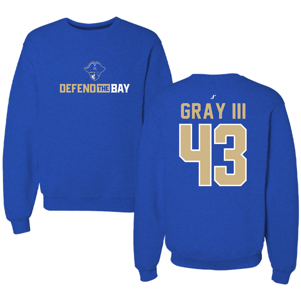 Massachusetts Maritime Academy Football Blue Dominate Crewneck - #43 Nathan Gray III