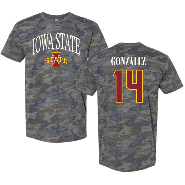 Iowa State University Volleyball Vintage Camo Tee - #14 Nayeli Gonzalez