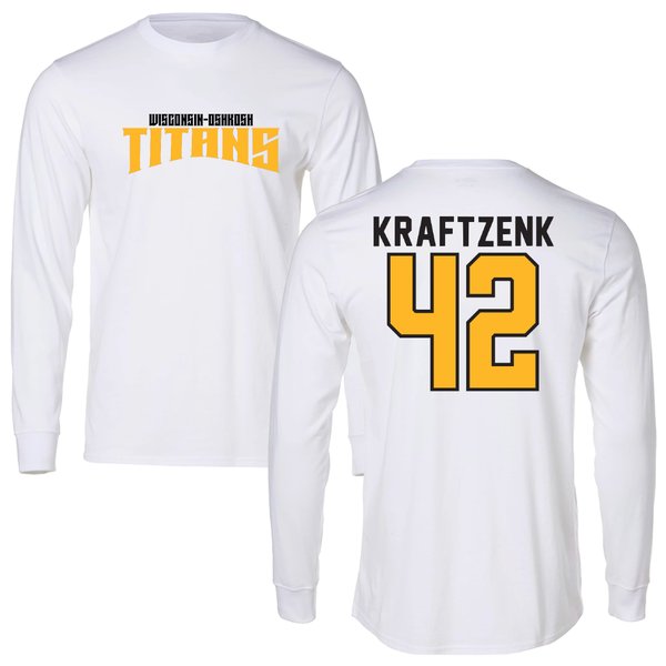 University of Wisconsin-Oshkosh Basketball White Classic Performance Long Sleeve - #42 Nicholas Kraftzenk
