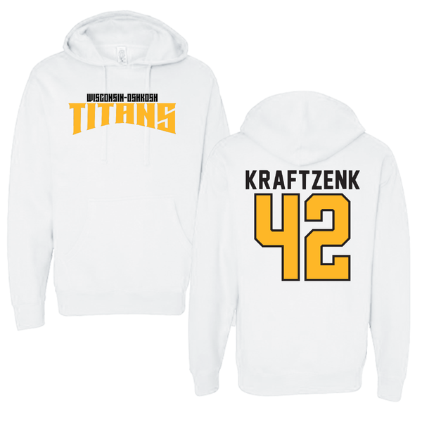 University of Wisconsin-Oshkosh Basketball White Classic Hoodie - #42 Nicholas Kraftzenk
