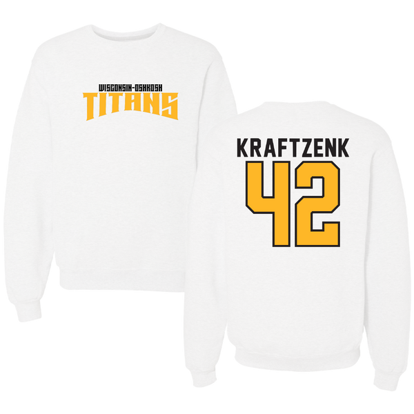 University of Wisconsin-Oshkosh Basketball White Classic Crewneck - #42 Nicholas Kraftzenk