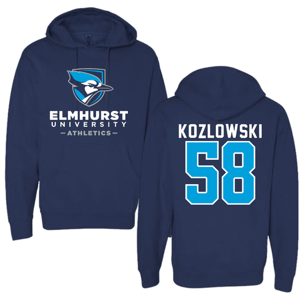 Elmhurst University Football Navy Hoodie - #58 Nick Kozlowski