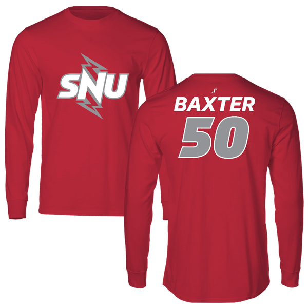 Southern Nazarene University Football Crimson Long Sleeve - #50 Noah Baxter