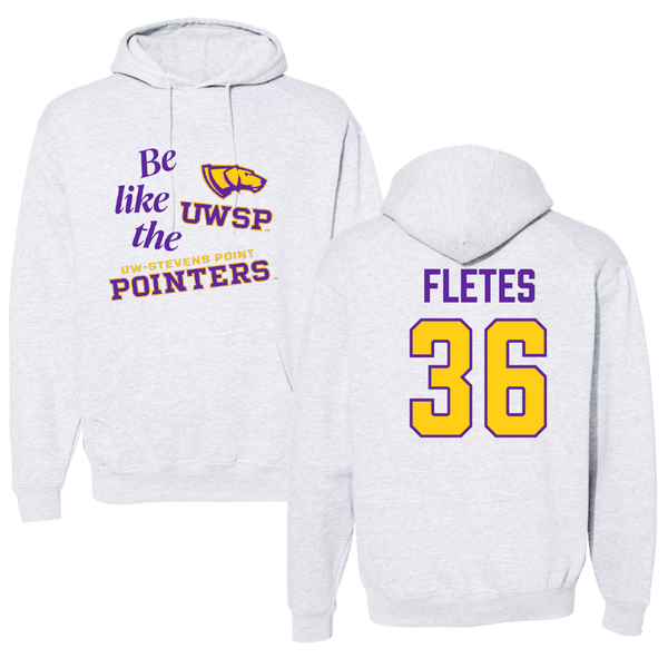 University of Wisconsin-Stevens Point Soccer (M) Light Gray Be Like Us Hoodie - #36 Noe Fletes