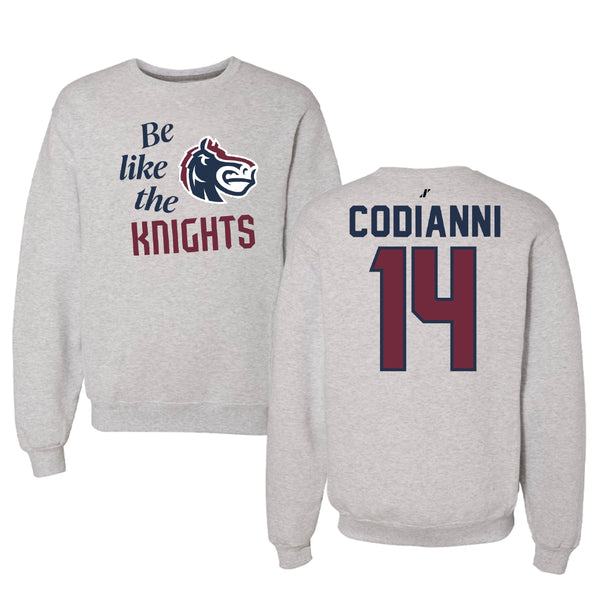 Fairleigh Dickinson University-Metropolitan Campus Lacrosse Light Gray Be Like Us Crewneck - #14 Nora Codianni