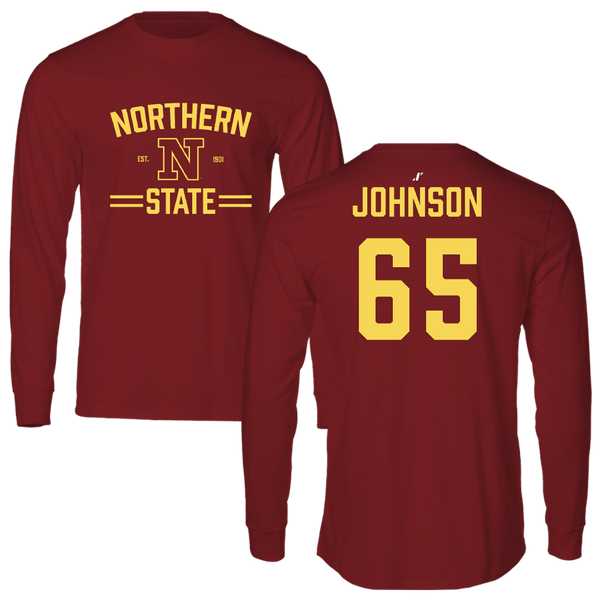 Northern State University Football Maroon Long Sleeve - #65 Paden Johnson