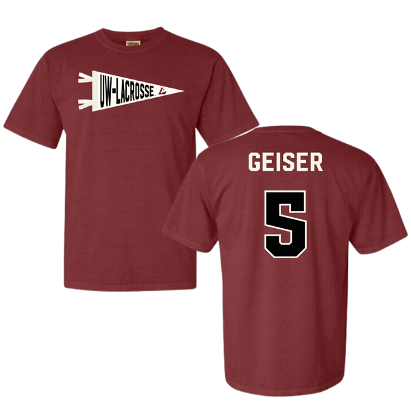 University of Wisconsin-La Crosse Volleyball Maroon Pennant Comfort Colors Tee - #5 Paige Geiser