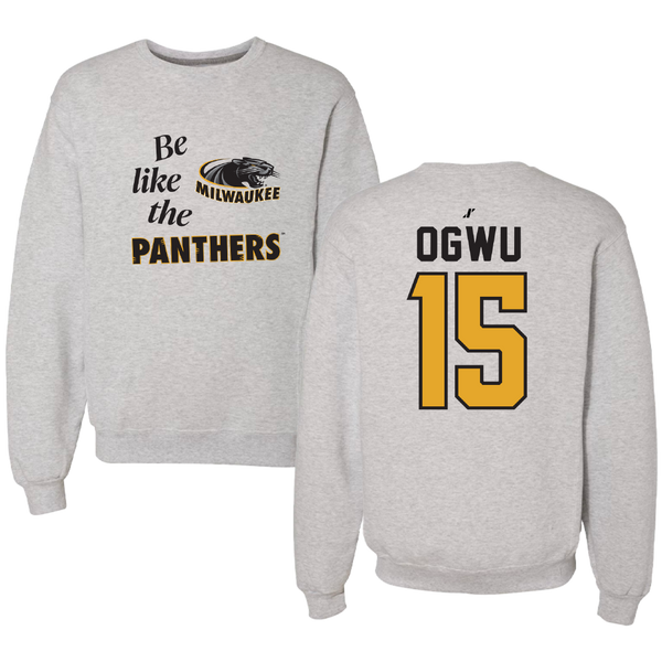 University of Wisconsin-Milwaukee Soccer Light Gray Be Like Us Crewneck - #15 Praise Ogwu