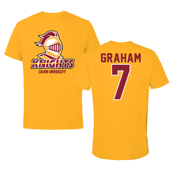 Calvin University Soccer Gold Tee - #7 Quinn Graham