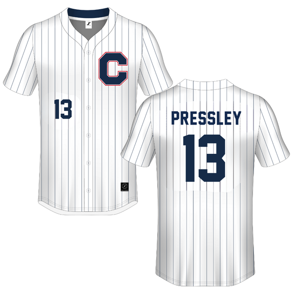 Catawba College White Pinstripe Button-Down Jersey - #13 Rachel Pressley