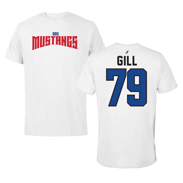 Southern Methodist University Football White Tee - #79 Reagan Gill