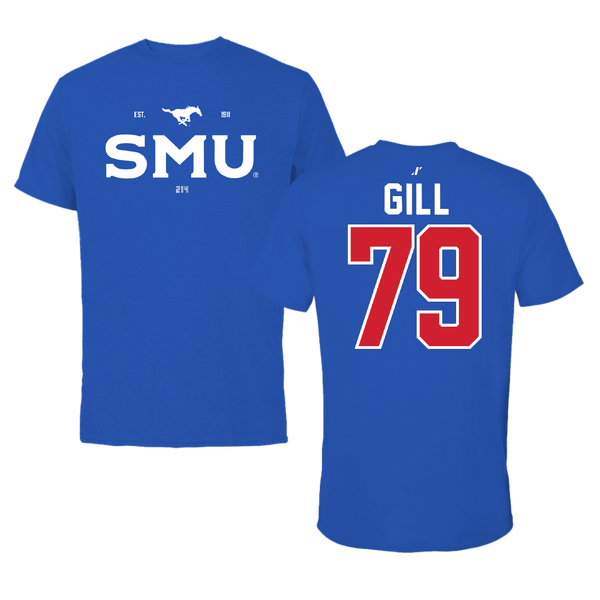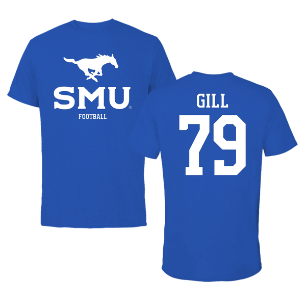 Southern Methodist University Football Blue Mascot Tee - #79 Reagan Gill