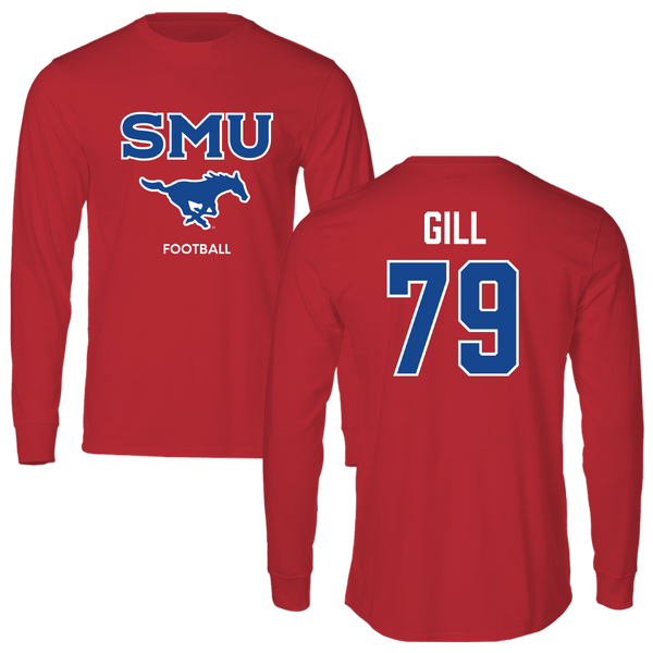 Southern Methodist University Football Red Long Sleeve - #79 Reagan Gill