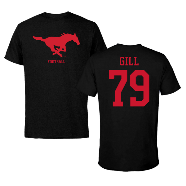 Southern Methodist University Football Black Tee - #79 Reagan Gill