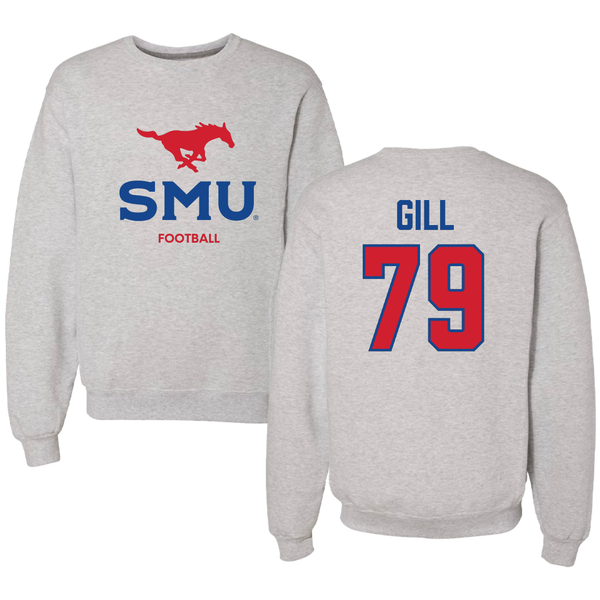 Southern Methodist University Football Light Gray Crewneck - #79 Reagan Gill
