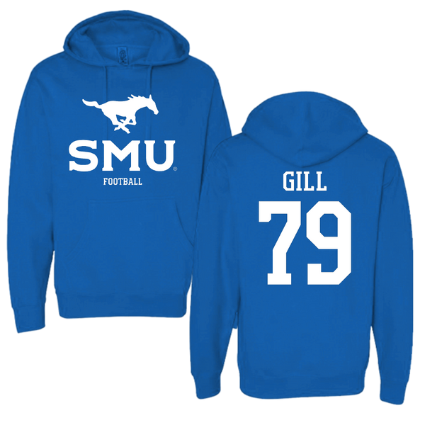 Southern Methodist University Football Blue Hoodie - #79 Reagan Gill