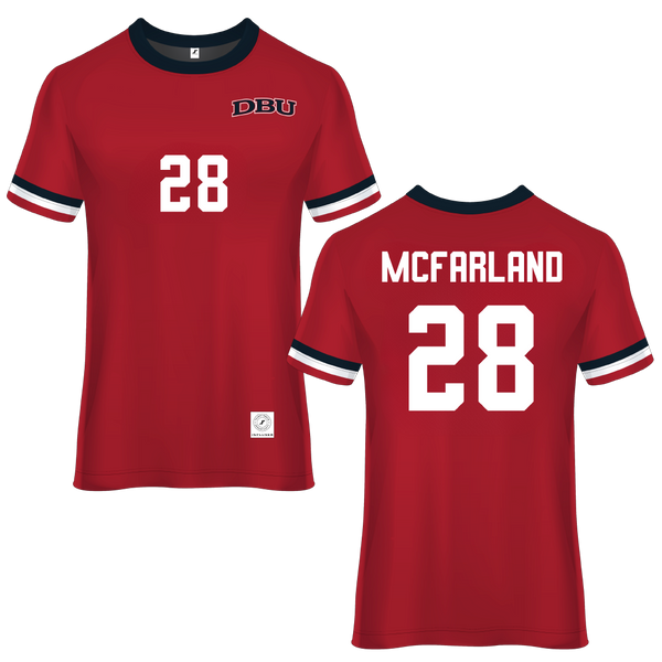 Dallas Baptist University Red Soccer Jersey - #28 Riley McFarland