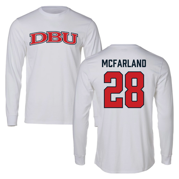 Dallas Baptist University Soccer White Long Sleeve - #28 Riley McFarland