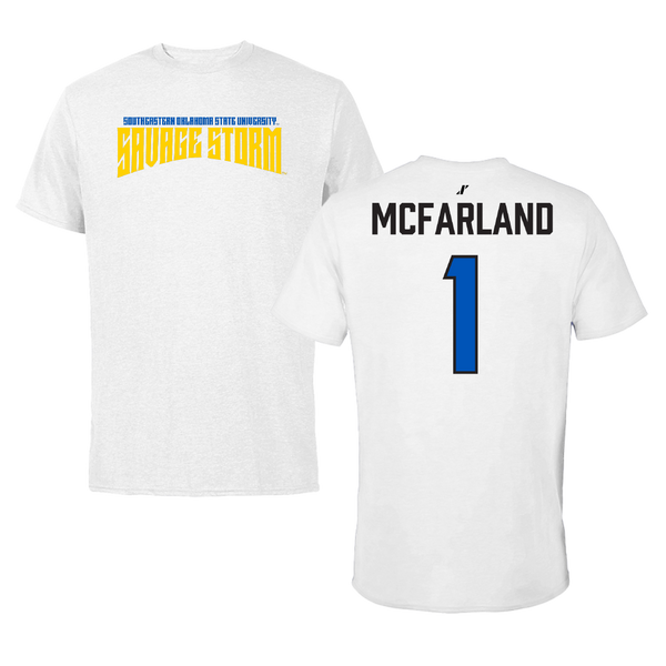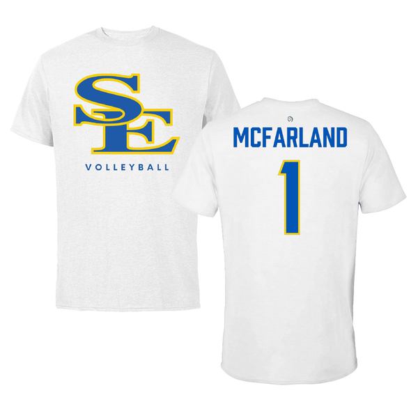 Southeastern Oklahoma State University Volleyball White Tee - #1 Riley McFarland