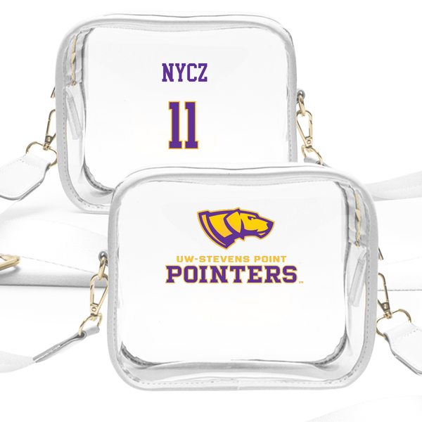 University of Wisconsin-Stevens Point Soccer (M) White Clear Stadium Bag - #11 Riley Nycz