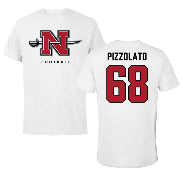 Nicholls State University Football White Tee - #68 Robbie Pizzolato