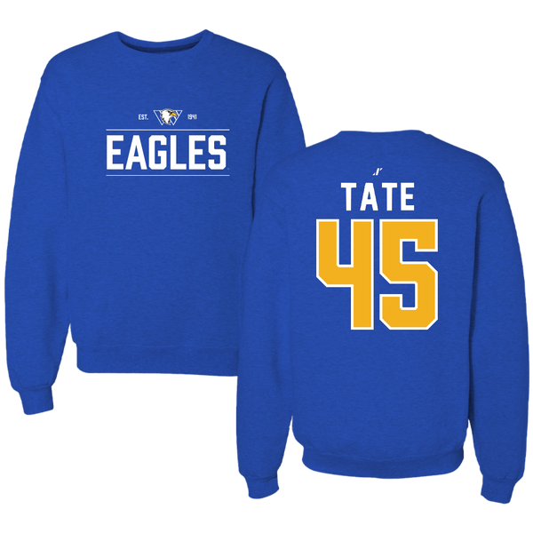 Williams Baptist University Baseball Blue Dominate Crewneck - #45 Robbie Tate
