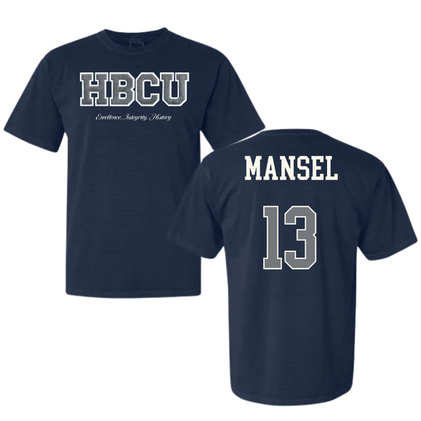 Jackson State University Basketball (M) Navy HBCU Varsity Comfort Colors Tee - #13 Romelle Mansel