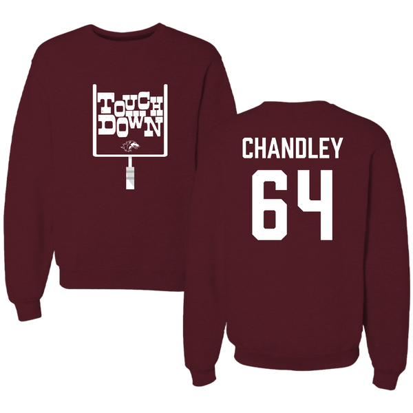Southern Illinois University at Carbondale Football Maroon Touchdown Crewneck - #64 Ryan Chandley