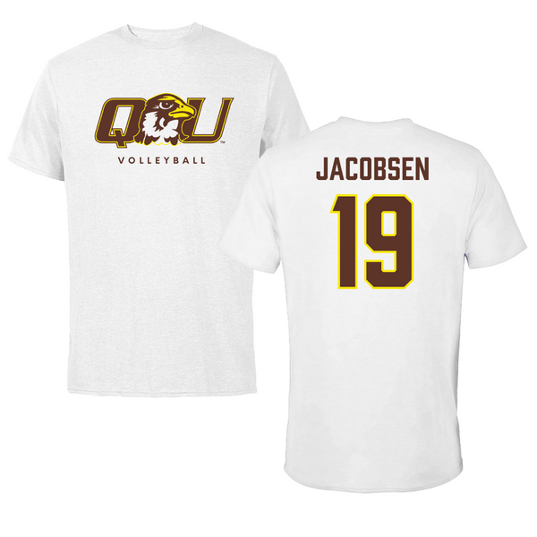 Quincy University Volleyball White Classic Tee - #19 Ryne Jacobsen