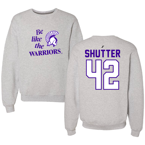Winona State University Football Light Gray Be Like Us Crewneck - #42 Sam Shutter