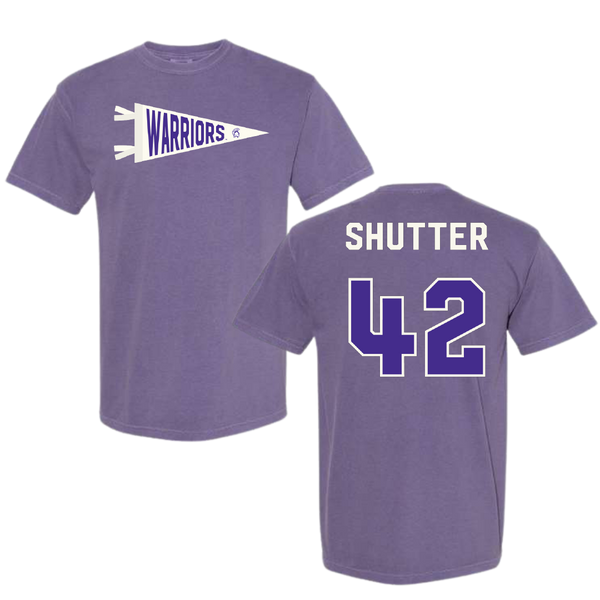 Winona State University Football Purple Pennant Comfort Colors Tee - #42 Sam Shutter