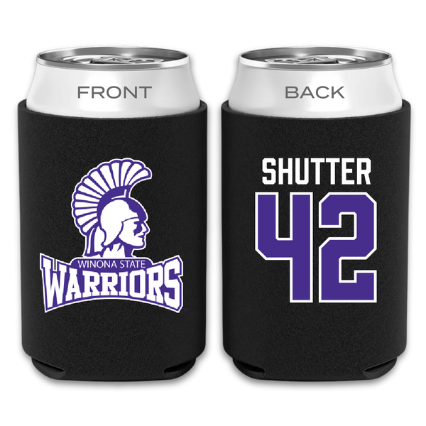 Winona State University Football Black Can Cooler - #42 Sam Shutter