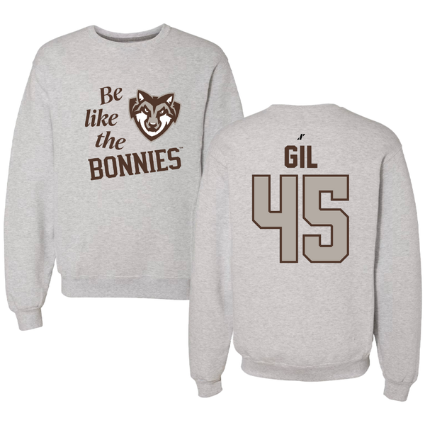 St. Bonaventure University Baseball Light Gray Be Like Us Crewneck - #45 Samuel Gil