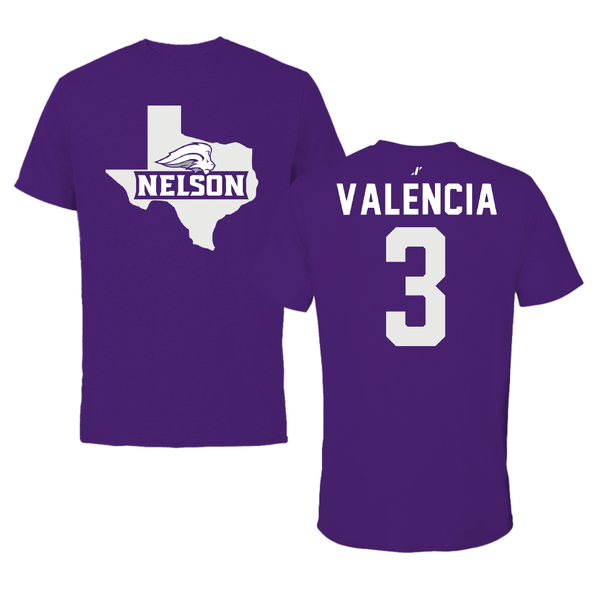 Nelson University Soccer Purple State Tee - #3 Saul Valencia
