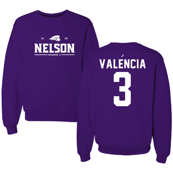 Nelson University Soccer Purple General Crewneck - #3 Saul Valencia